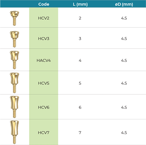 Provides remarkable aesthetic outcomes by enhancing tissue translucency and minimizing the visibility of the abutment above the tissue level. The innovative architecture fosters an emergence profile through an optimal solid connection, diminishing trauma to the implant site and expediting the healing process. Represents a groundbreaking standard in dentistry, tailored for immediate loading onto the implant. Guarantees a secure and snug fit between the abutment and the implant, establishing exceptional primary stability. Crafted from the finest Titanium alloy, ensuring superb biocompatibility and long-term durability. Creates a tightly sealed emergence profile, safeguarding the implant's crestal zone from intrusion by oral cavity debris.